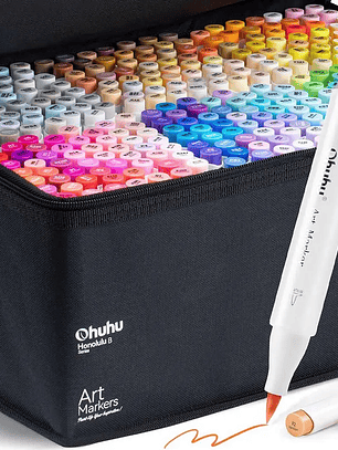 OHUHU MARCADOR ACRÍLICO INDIVIDUAL DOBLE PUNTA (PUNTA FINA Y REDONDA) NEGRO
